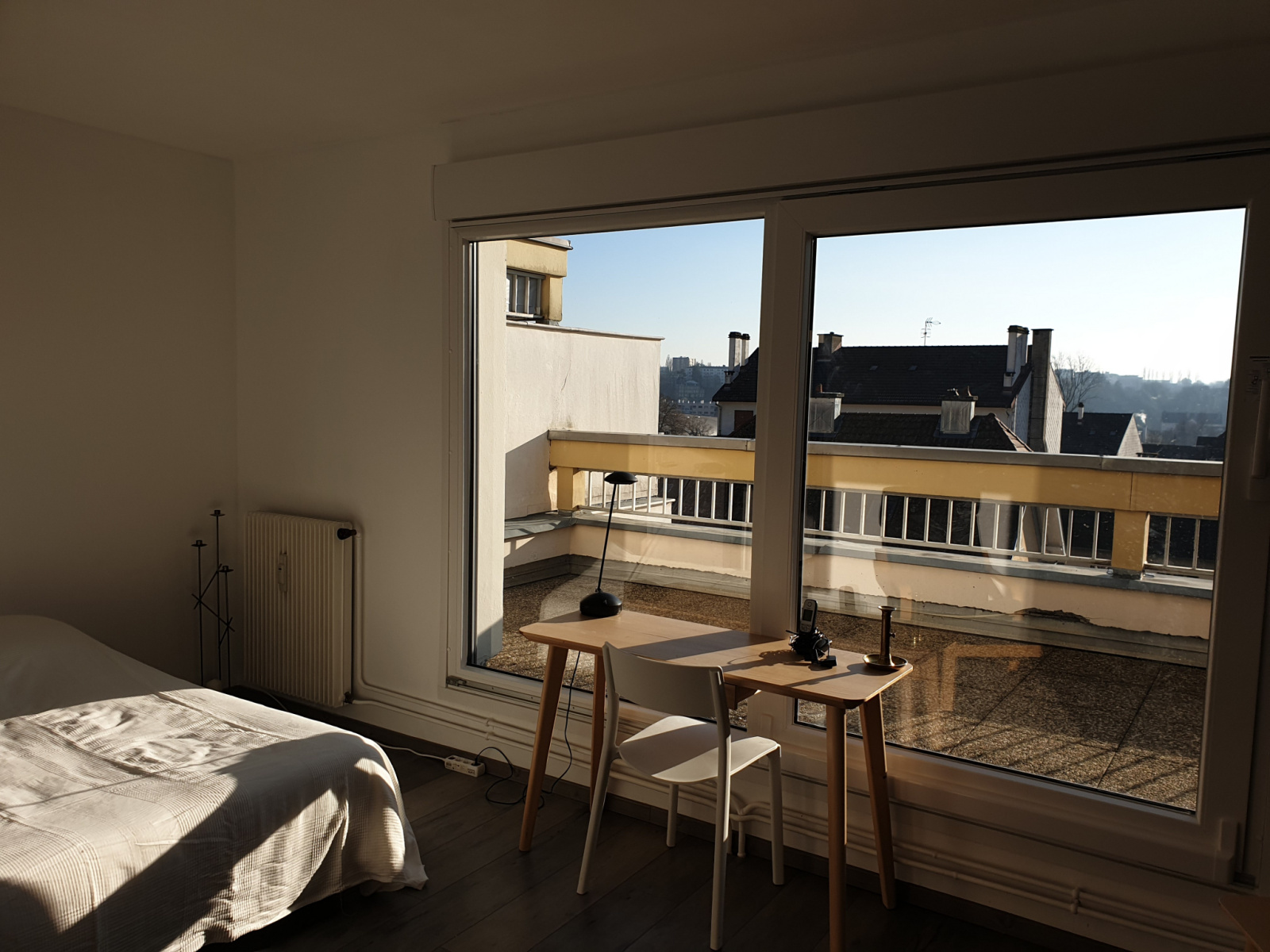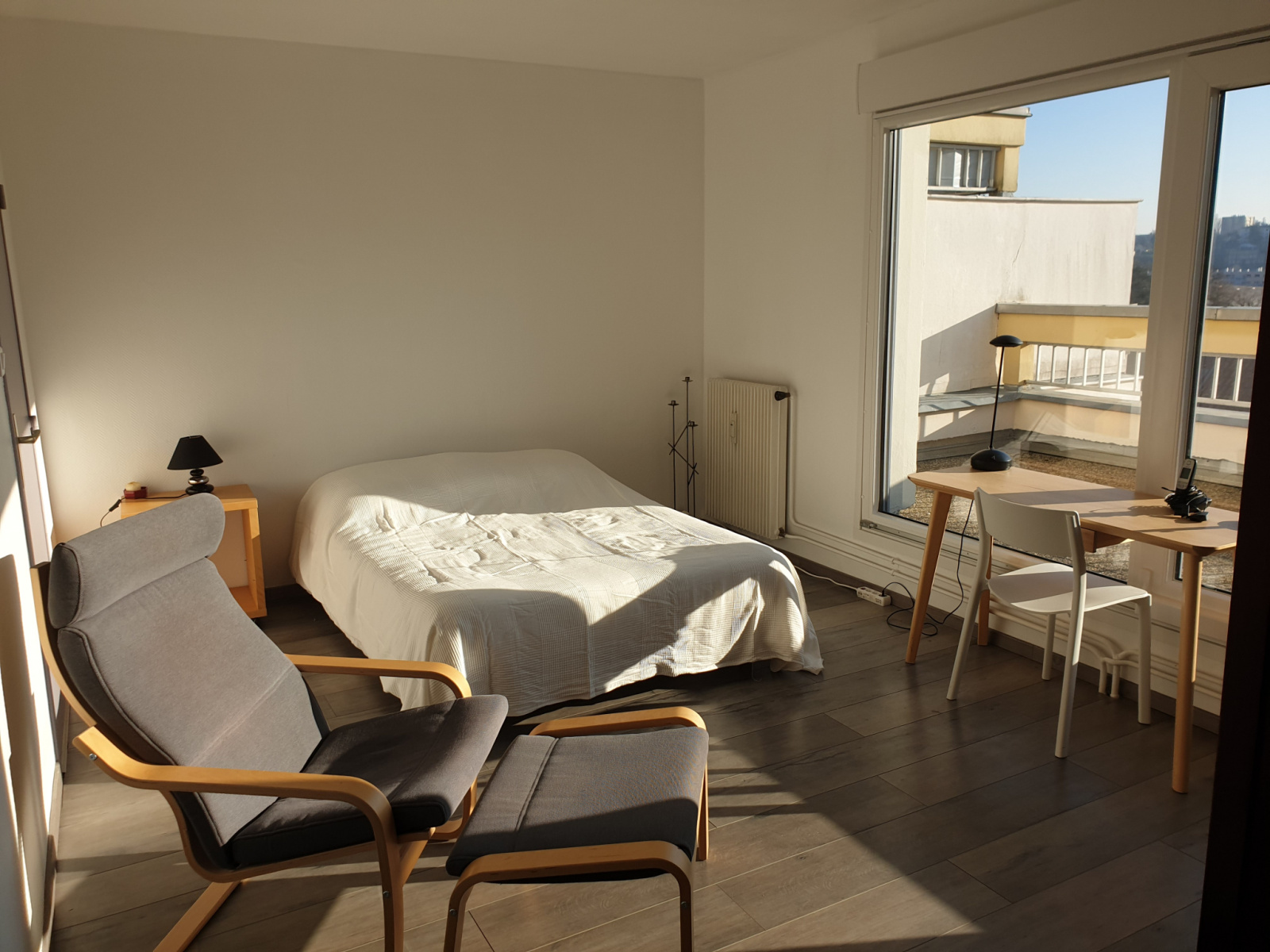 Magnifique terrasse de 15m² orientée plein sud avec vue dégagée, et garage.