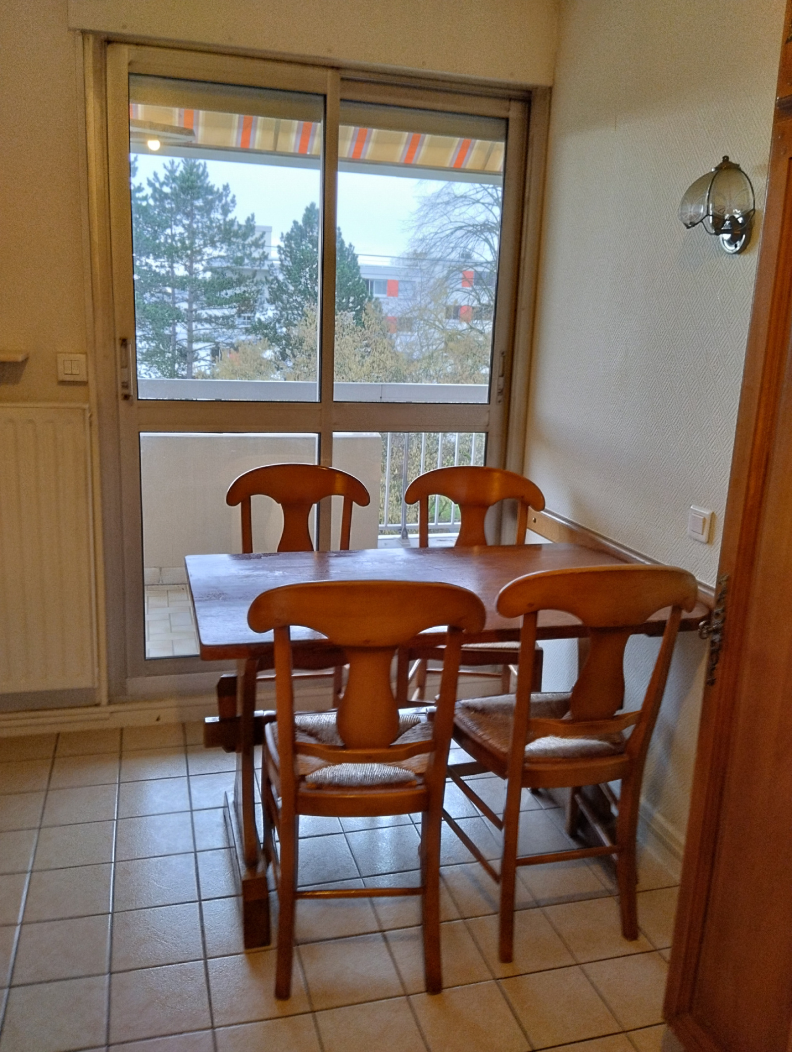 Entrée avec placard, cuisine indépendante équipée (ancienne), séjour sur balcon sud de 9m² (carrelé),