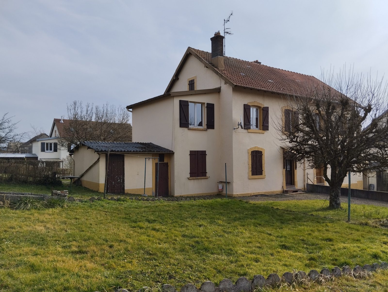 vaste maison mitoyenne d'un côté d'environ 124m² (pierres de soubassement) ,